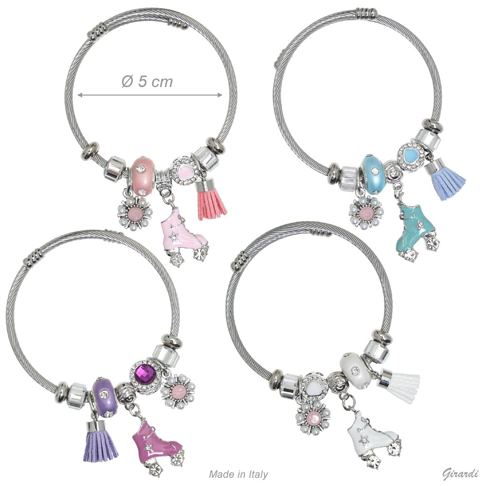 Chain necklace with roller skate in enamelled metal and rhinestones in many nice colors.