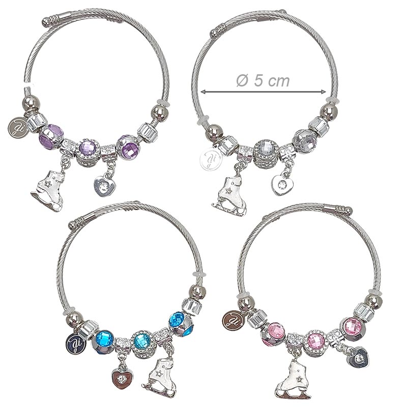 Bracciale Acciaio Charms Strass Pattino Ghiaccio